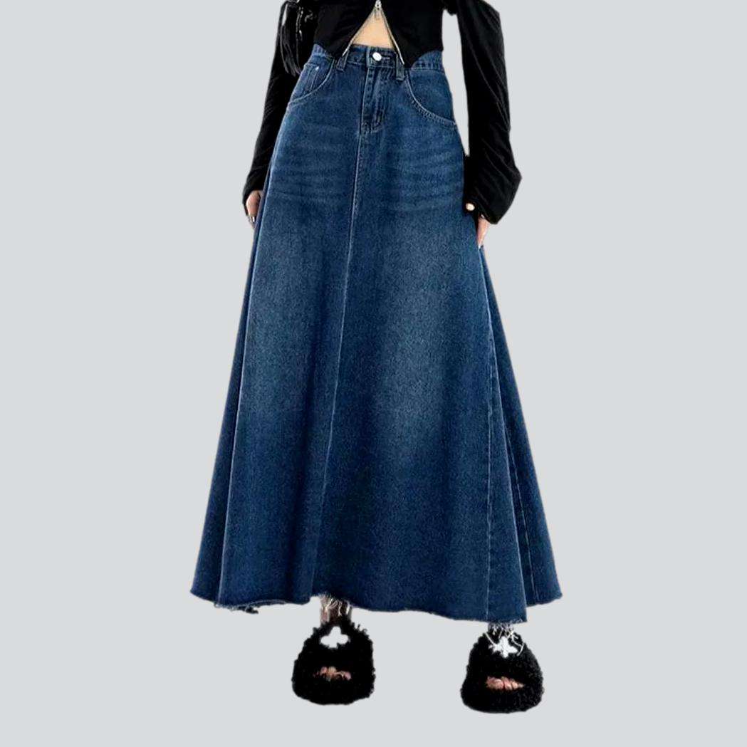 Willkommen zum ultimativen Denim-Erlebnis! Unsere Frühjahr-Sommer-Kollektion 2023 präsentiert den geschliffenen A-Linien-Rock mit Raw Hem im Y2K-Stil. Ein klassisches Meisterwerk, das Ihren Look verwandeln wird. Gefertigt für die Fashionista mit einem Hang zur Nostalgie. Dieser hoch taillierte Rock besticht durch ein filigranes Zusammenspiel aus Hosenträgern und Knopfverschluss für eine perfekte Passform. Die gemalten Prints und die geschliffene Oberfläche verleihen Tiefe und Charakter und lassen Sie aus der Masse hervorstechen.