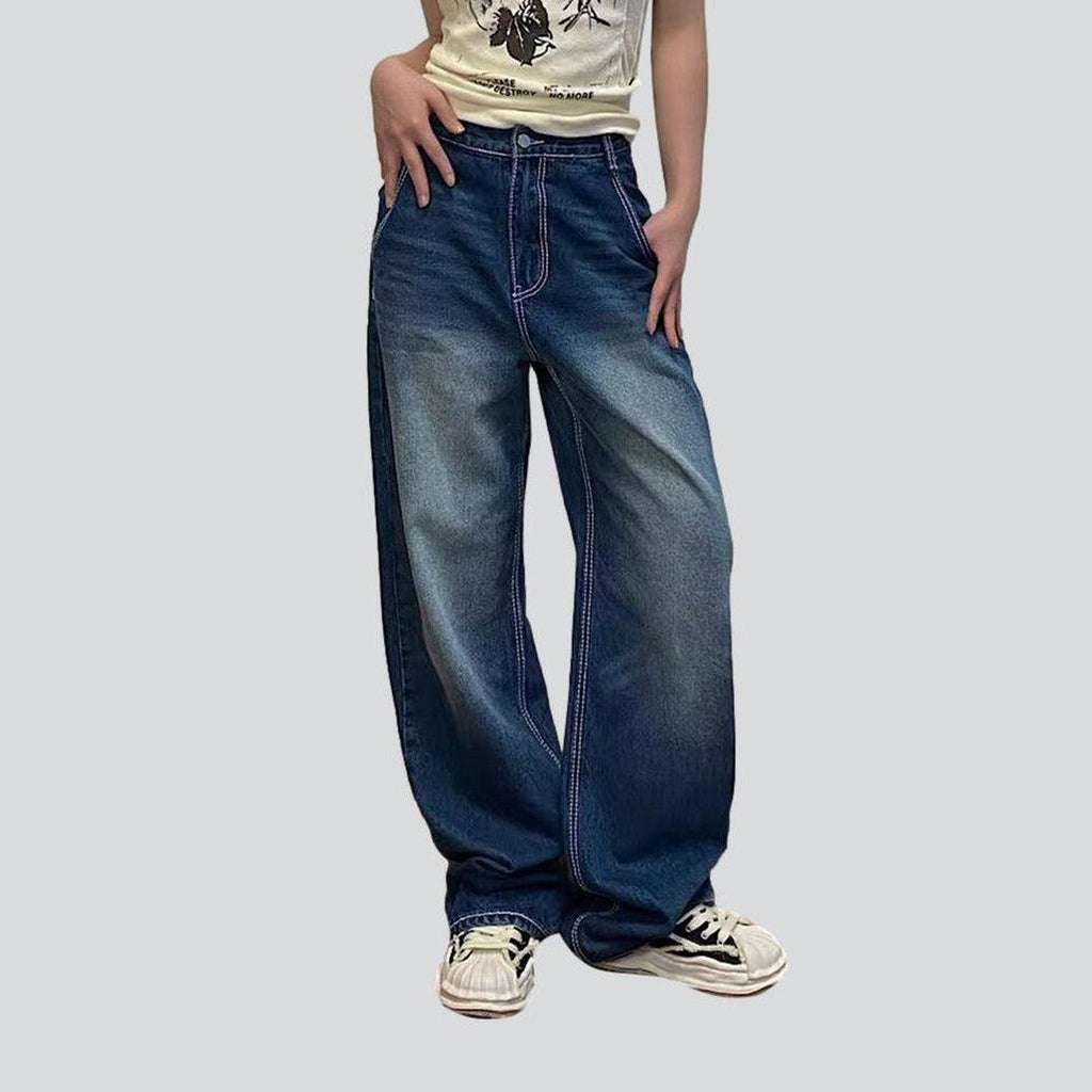Entdecken Sie Vintage-Style mit unserer Damenjeans im 90er-Jahre-Stil mit erhöhter Taille und Pattentaschen auf der Rückseite aus der Herbstkollektion 2023. Diese Baggy-Jeans mit mittlerer Waschung und Reißverschluss sowie Knopfverschluss besticht durch einen klassischen Look, der Vergangenheit und Gegenwart verbindet.