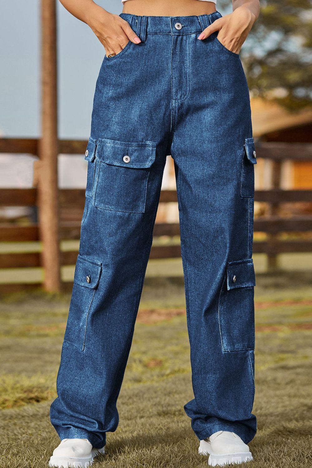 Geknöpfte Slim Fit Long Jeans mit Taschen