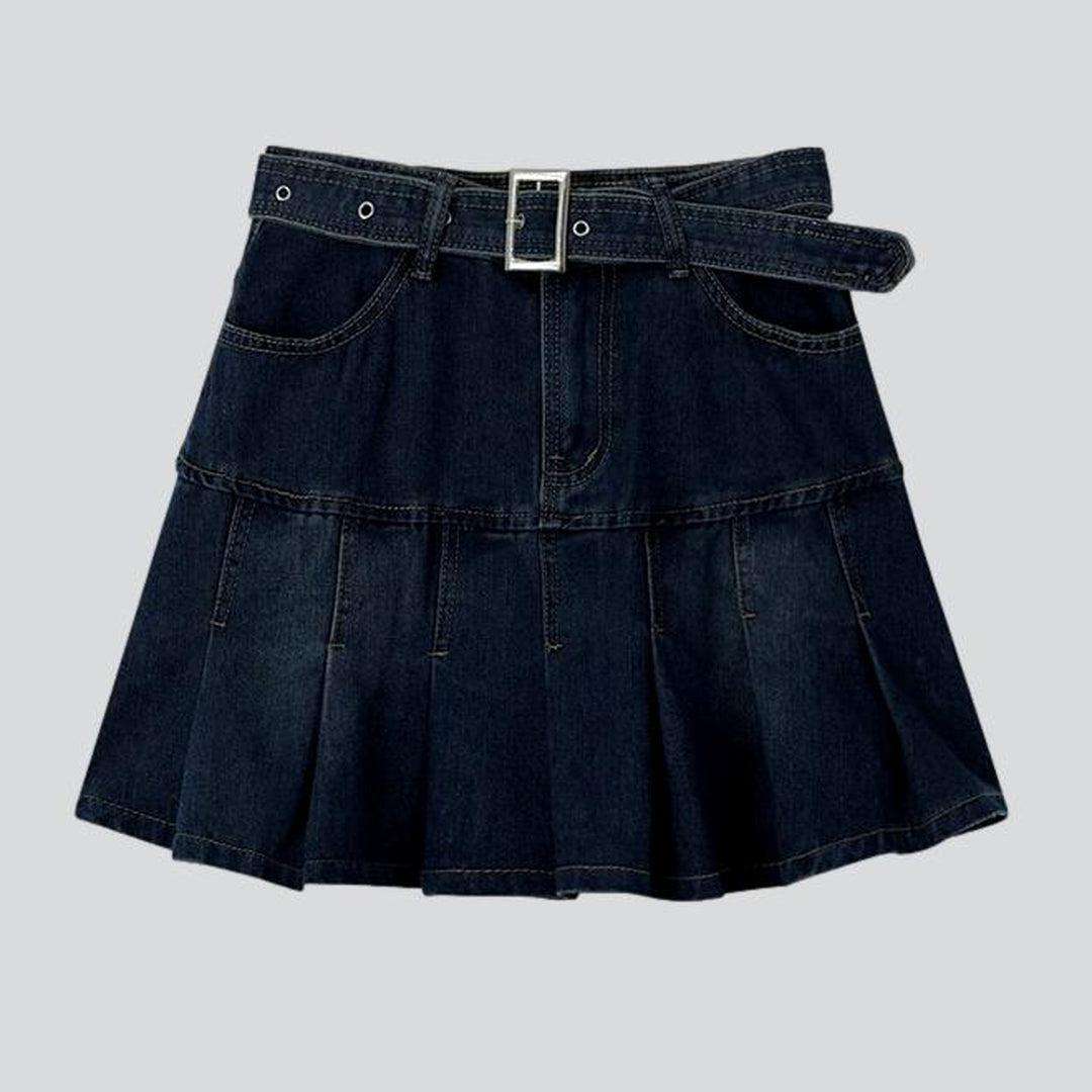 Tauchen Sie ein in die Y2K-Ära und springen Sie mit diesem atemberaubenden dunkelblauen Jeans-Skaterrock aus unserer Kollektion in die Sommermode 2023! Mit mittelhohem Schnitt, glatter Textur und aufwendigen Prints ist dieser auffällige Minirock der Star jedes Outfits.