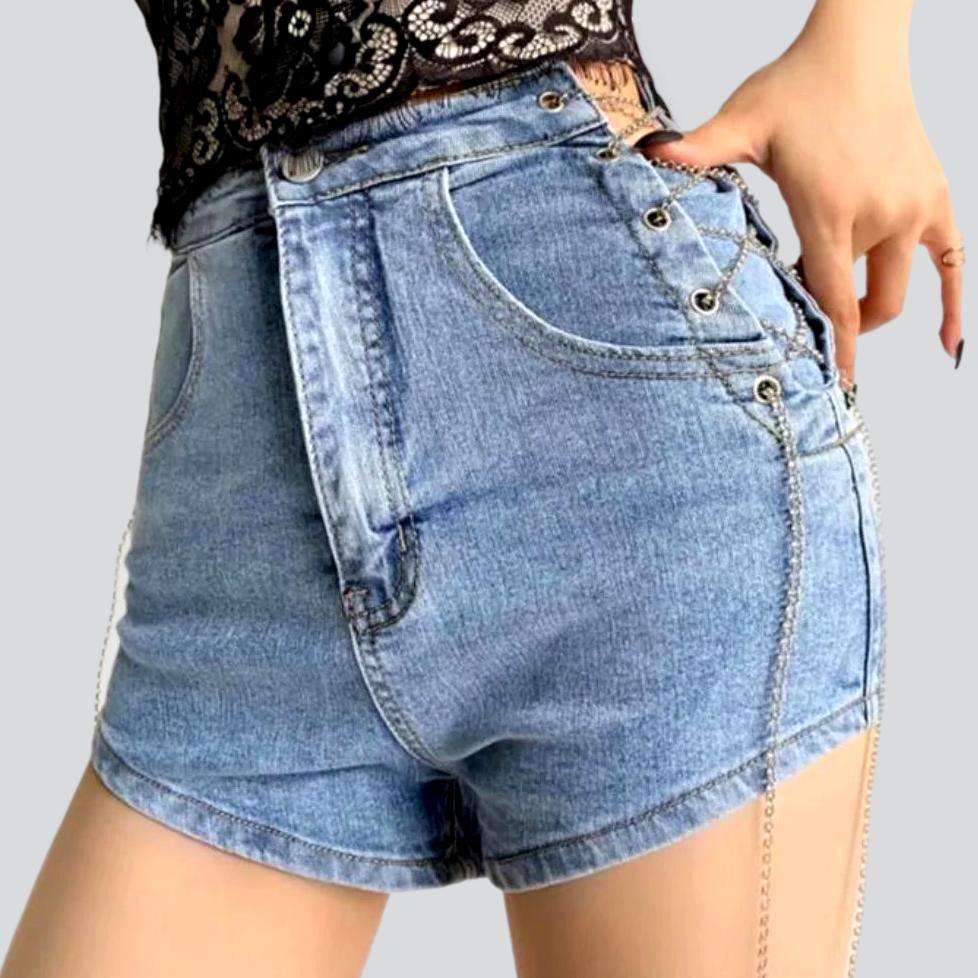 Bringen Sie Ihren Sommer-Style auf das nächste Level mit unserer gerade geschnittenen, hoch taillierten Jeansshorts aus der Sommerkollektion 2023 mit Kettenkordelzug. Dieses Stück im Y2K-Stil verfügt über einen Reißverschluss und einen Knopfverschluss sowie eine elastische Passform für maximalen Komfort. Verziert mit einem Vintage-inspirierten Flair sind diese Shorts Ihr Lieblingsstück für jede Sommerparty!