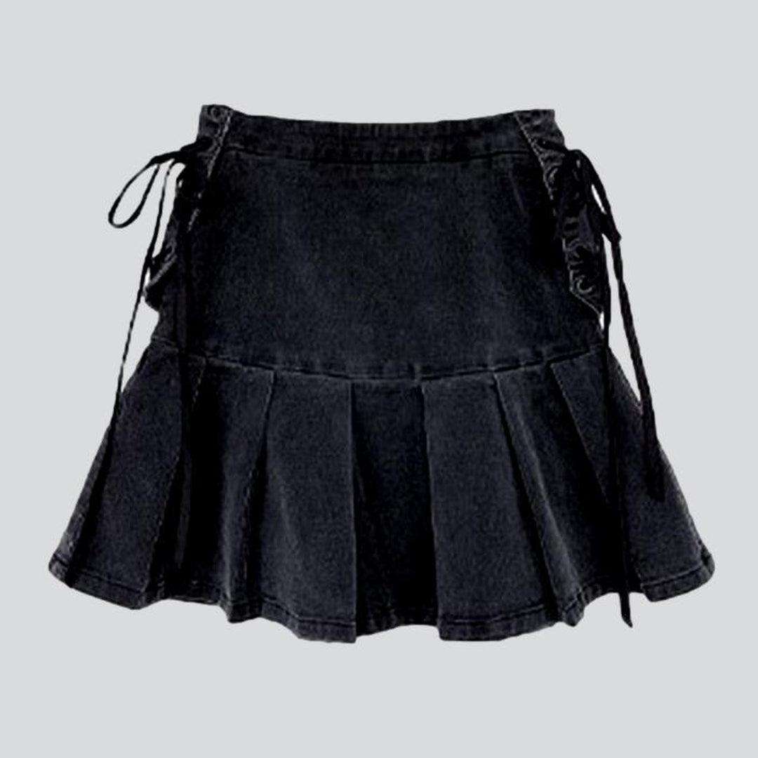 Setzen Sie ein unvergessliches Fashion-Statement mit dem monochromen Mini- Jeans-Skaterrock aus der Frühjahr-Sommer-Kollektion 2023 – einer lebendigen Hommage an den Kultstil der 90er!