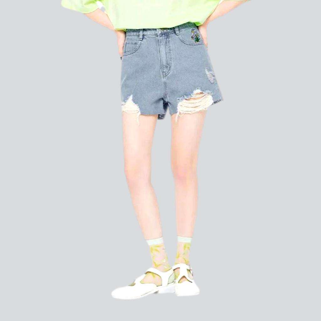 Seien Sie diesen Sommer stylisch und grungy mit unserer Sommerkollektion 2023 aus zerrissenen Damen-Jeansshorts! Perfekt verarbeitet mit weitem Bein, hoher Taille und Reißverschluss sowie Knopfverschluss bieten diese Shorts eine einzigartige Kombination aus Mode und Komfort. Setzen Sie mit diesen zeitlosen Shorts ein Statement und ziehen Sie den Neid aller auf sich.