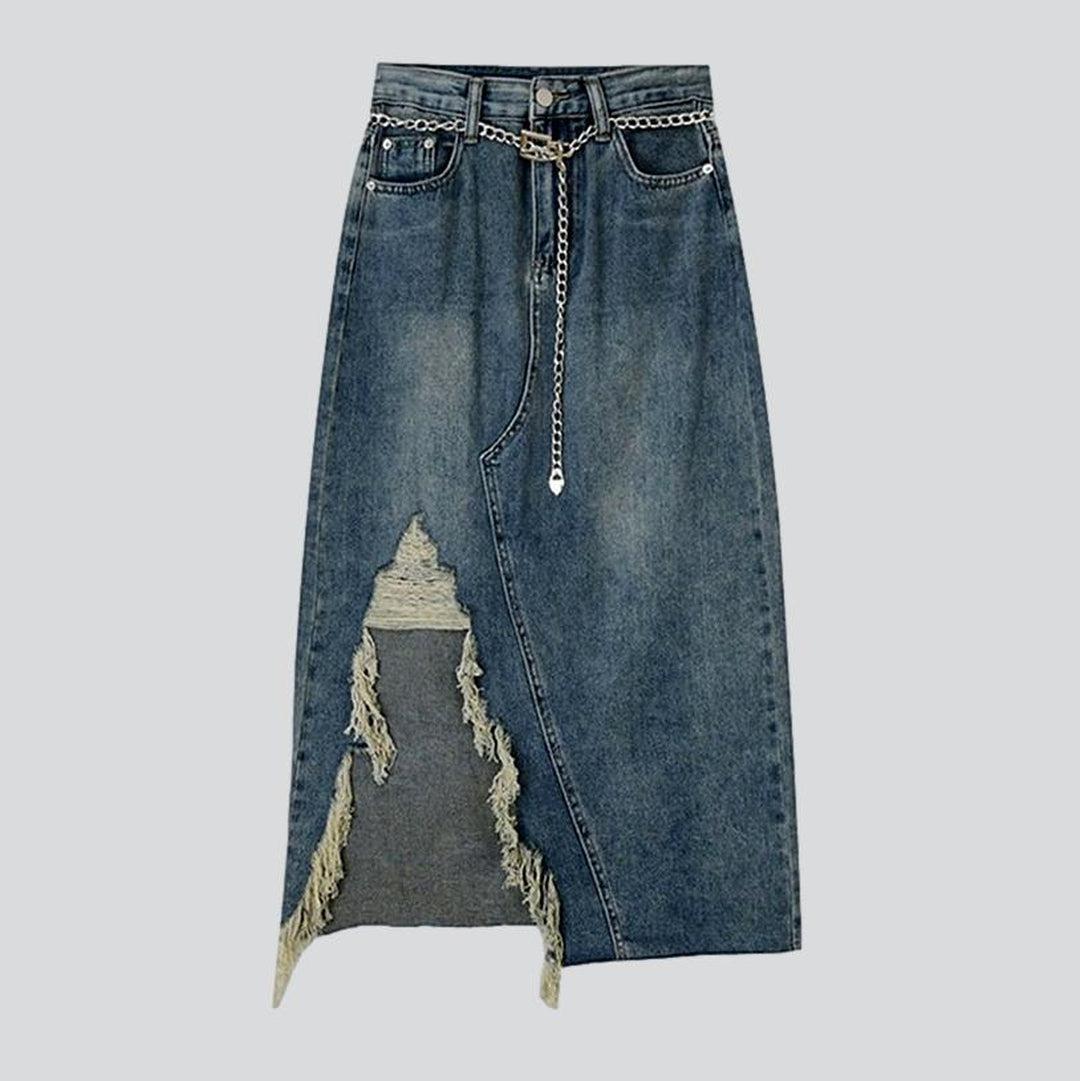 Wir präsentieren die Frühjahr-Sommer-Kollektion 2023: Der verlängerte Jeansrock mit Distressed-Schlitz – die perfekte Ergänzung für Ihre Streetwear-Garderobe! Dieser hoch taillierte A-Linien-Rock mit Distressed-Muster und stylischen Schlitzen sorgt für einen schicken Look und setzt gleichzeitig ein Statement. Mit Reißverschluss und Knopfverschluss genießen Sie Funktionalität und Style zugleich.