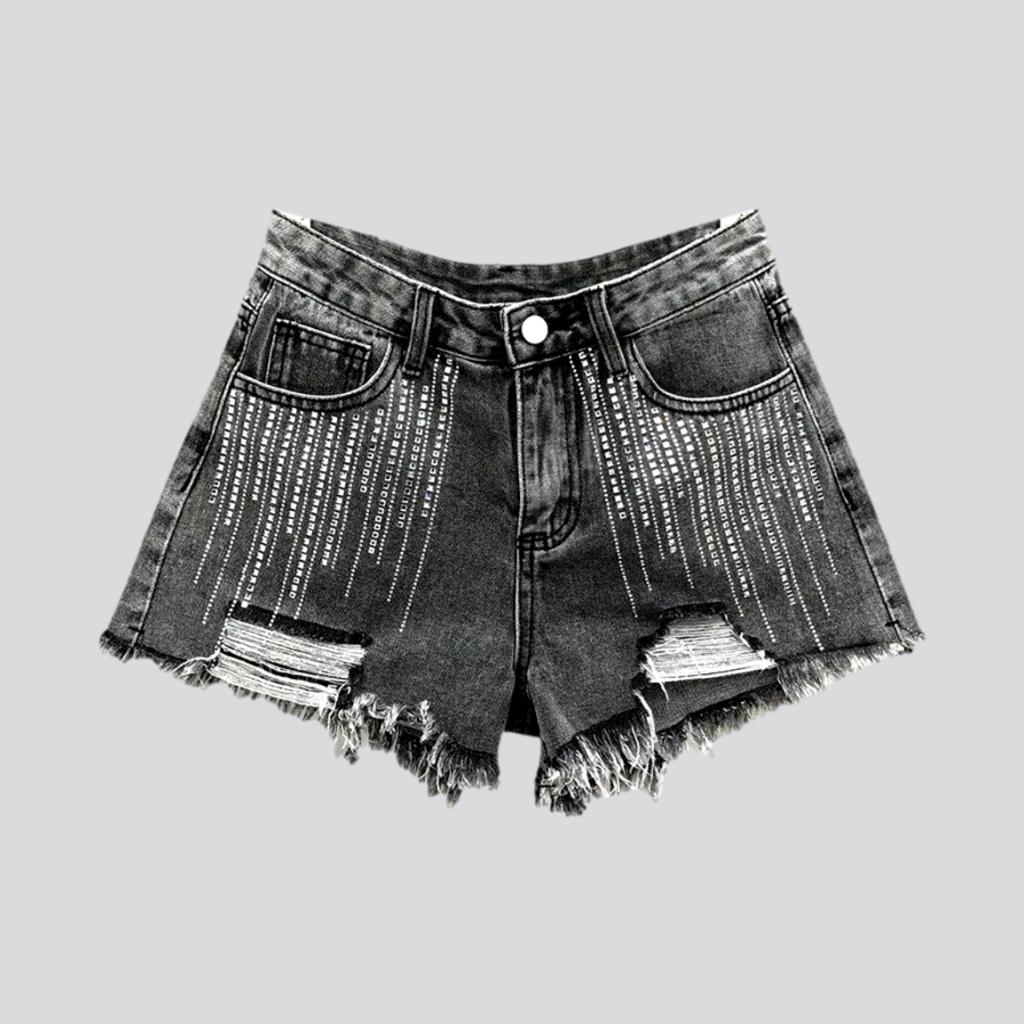 Machen Sie sich bereit, die Saison im Sturm zu erobern mit den Distressed Vertical Rhinestone Denim Shorts aus unserer Sommerkollektion 2023 – einer harmonischen Mischung aus Vintage-Charme und dem temperamentvollen Modetrend von heute!