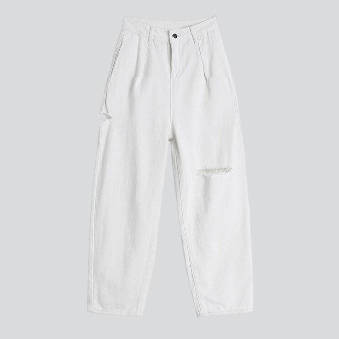 Wir stellen die weißen Baggy-Jeans für Damen im Used-Look aus unserer Frühjahr-Sommer-Kollektion 2023 vor – ein Statement-Piece, das alternative Mode perfekt verkörpert!