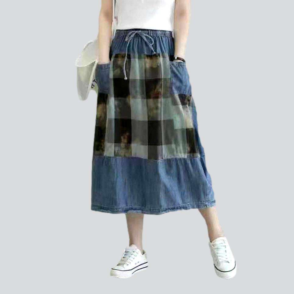 Ein Must-have für die Saison. Dieser Rock ist aus hochwertigem Denim gefertigt und hat eine hohe Taille. Die lange Silhouette mit Kordelzug sorgt für die perfekte Passform für einen eleganten und lässigen Look. Mit einem einzigartigen, bemalten Design setzt dieses Stück ein Statement und sorgt für Aufsehen!