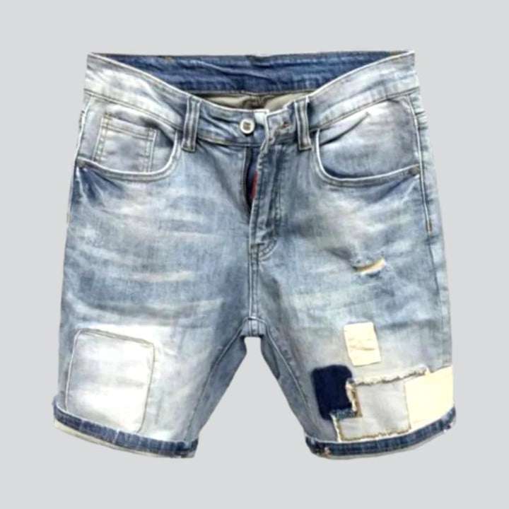 Verleihen Sie Ihrem urbanen Stil mit unseren bestickten Herren-Jeansshorts aus der Sommerkollektion 2023 das gewisse Etwas! Dieses schmale, mittelhohe Design ist die perfekte Interpretation des traditionellen Denims. Es verfügt über einen stylischen Reißverschluss und Knopfverschluss und bietet eine einzigartige Mischung aus Streetstyle und Retro-Stil.