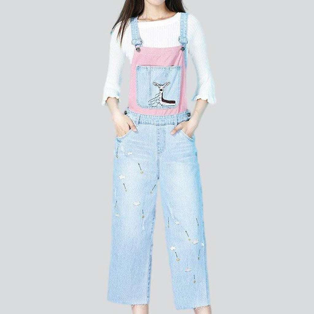 Setzen Sie in dieser Saison ein Trend-Statement mit unserer Frühjahr-Sommer-Kollektion 2023 bestickter Jeans-Latzhosen für Damen !