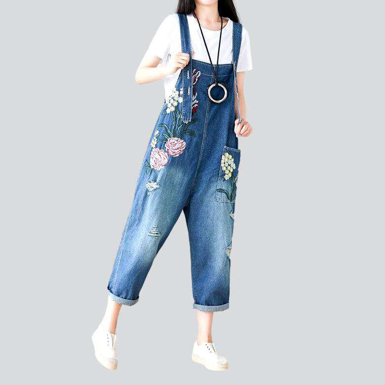 Sei ein Trendsetter und ergänze deine Garderobe mit diesem Jeans-Jumpsuit mit Blumenstickerei. Perfekt für Musikfestivals und entspannte Tage mit Freunden. Damit setzt du garantiert ein Statement! Hol dir jetzt deinen und zeig deinen schicken Style!
