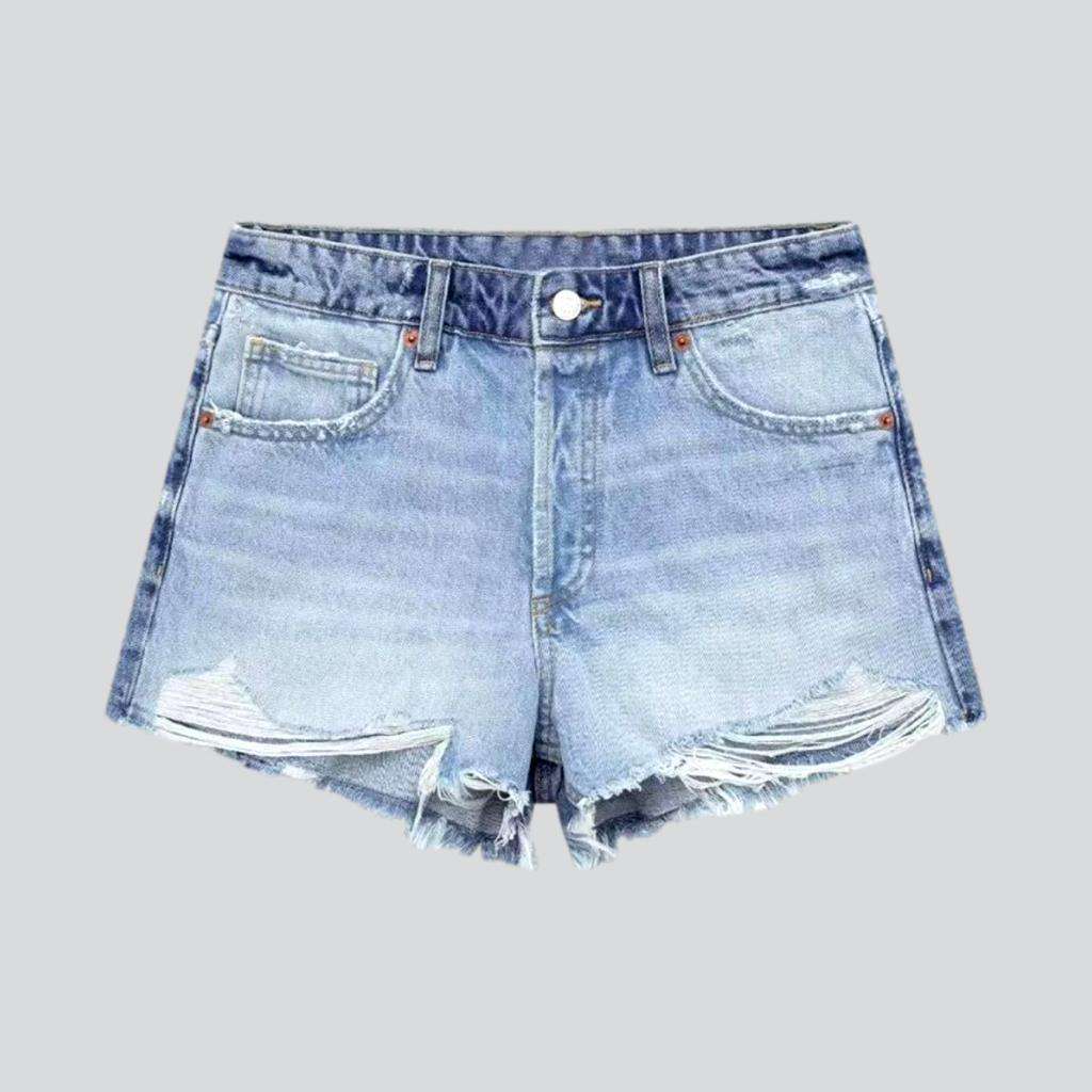 Entdecken Sie die Göttin in sich mit unseren hoch taillierten Distressed-Jeansshorts aus der Sommerkollektion 2023! Diese Shorts mit weitem Bein und Knopfverschluss bestechen durch ihren rauen Distressed-Look, der die perfekte Balance zwischen Vintage-Vibes und moderner Mode einfängt – ein Klassiker für alle Gelegenheiten.