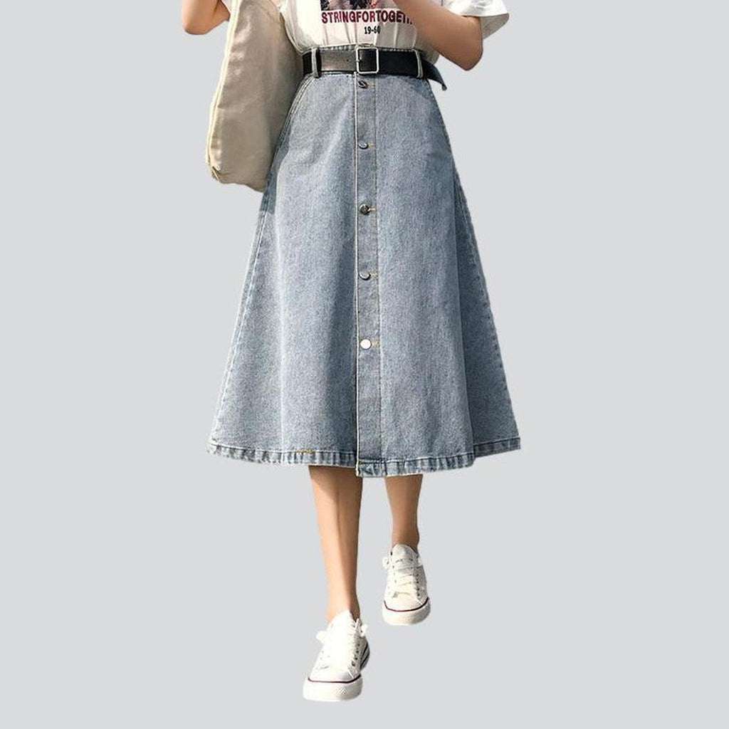 Seien Sie mutig und wagemutig mit dem knielangen A-Linien-Jeansrock der Frühjahr-Sommer-Kollektion 2023. Mühelos cool und punkig inspiriert. Dieser Rock ist perfekt für jeden Anlass. Ob Sie zu einem Musikfestival gehen oder einen gemütlichen Tag mit Freunden verbringen – mit diesem unverzichtbaren Stück werden Sie garantiert alle Blicke auf sich ziehen.