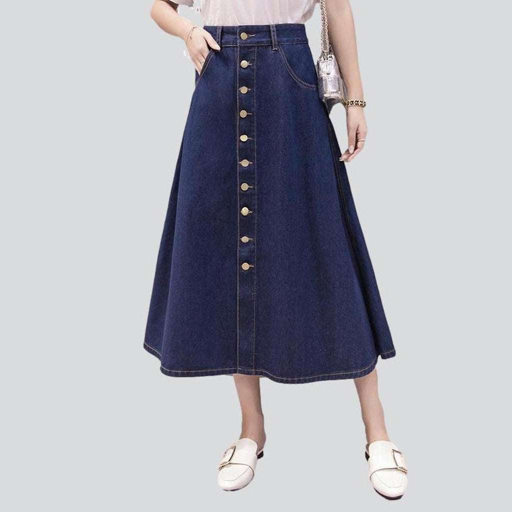 Spüren Sie die frische Energie der 90er mit dem verlängerten Damenrock unserer Frühjahr-Sommer-Kollektion 2023! Eine moderne Interpretation des klassischen Stonewashed-Denims. Dieser hoch taillierte A-Linien-Rock verleiht Ihrer Garderobe Vintage-inspirierte Eleganz. Mit seinem schönen Knopfverschluss ist er das perfekte Stück, um einen bleibenden Eindruck zu hinterlassen.