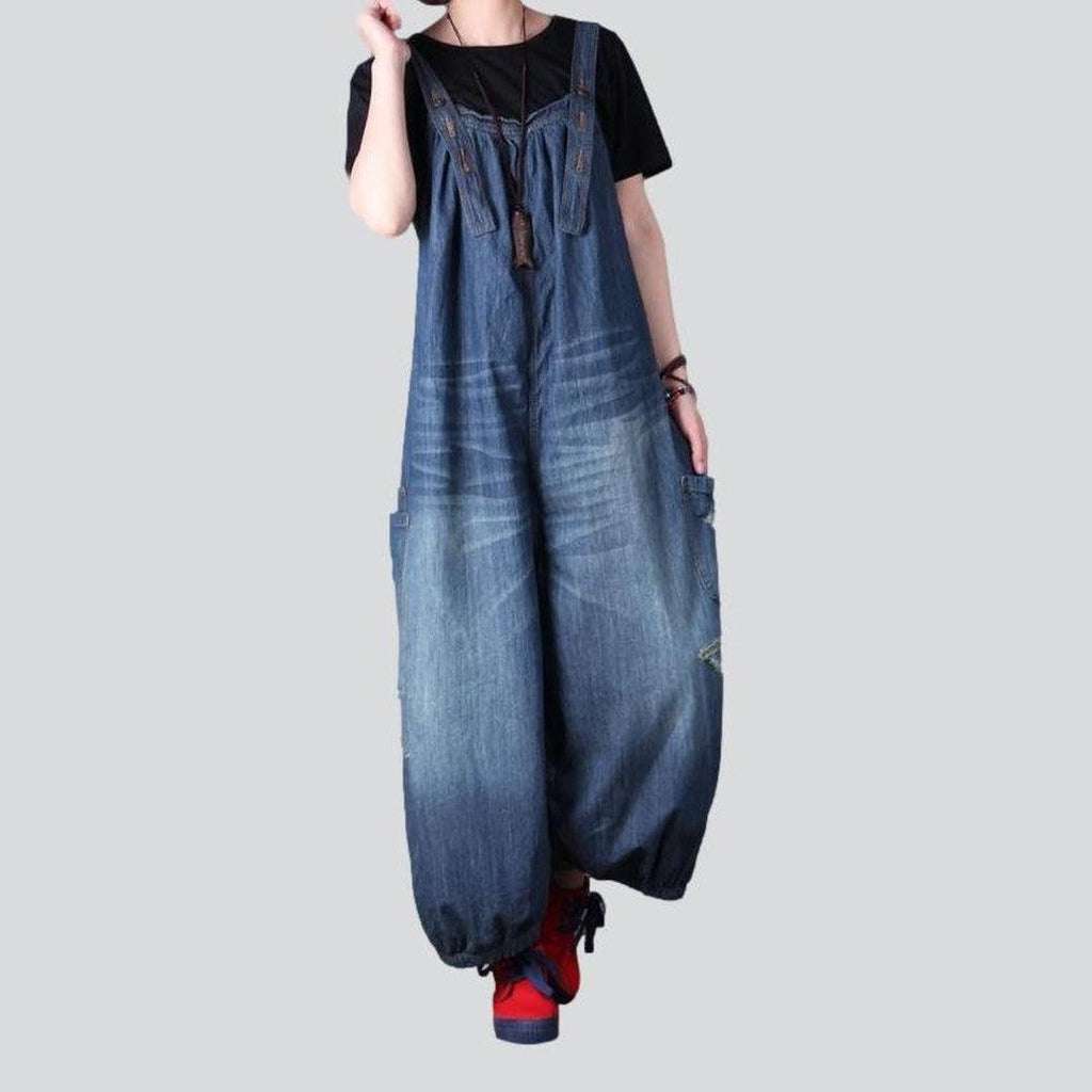 Diese Jeans-Latzhose wurde entworfen, um die nostalgische Atmosphäre der 90er Jahre wieder aufleben zu lassen. Sie ist die perfekte Balance zwischen zeitgenössischer Mode und Vintage-Stil. Mit ihrem einzigartigen Baggy-Schnitt und den Hosenträgerverschlüssen strahlt sie eine mühelos coole Attitüde aus, die garantiert ein Statement setzt.