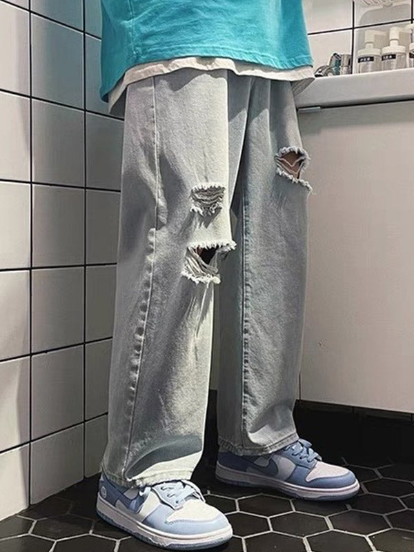 Beschreibung: Diese verwaschene Distressed-Jeans hat eine schmale Passform mit geradem Bein. Mit funktionalem Taschendesign, ausgefransten Rissen und Reißverschluss vorne.