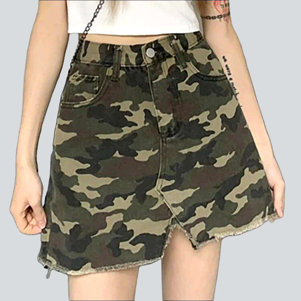 Es ist Zeit, Ihren lässigen Stil mit dem Mini-Split-Camouflage -Jeansrock aus der Sommerkollektion 2023 zu zeigen – die perfekte Mischung aus City und Chic!