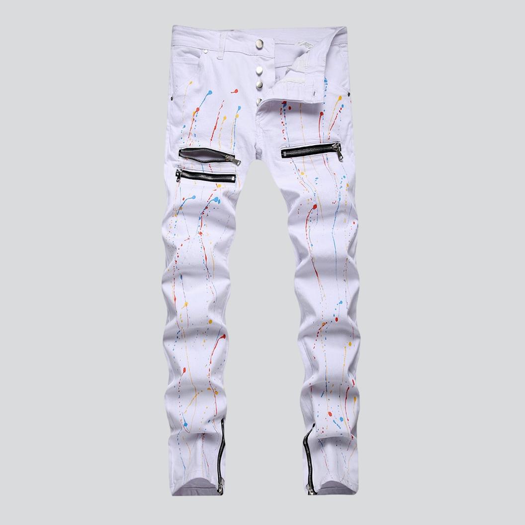 Bringen Sie Ihren trendigen Stil mit den Painted White Jeans der Frühjahr-Sommer-Kollektion 2023 auf das nächste Level! Mit mittelhoher Taille und schmaler Silhouette sind diese Jeans perfekt für jede Jahreszeit. Mit einer Kombination aus Reißverschlüssen, Knopfverschluss und dehnbarem Material werden Sie garantiert überall die Blicke auf sich ziehen.