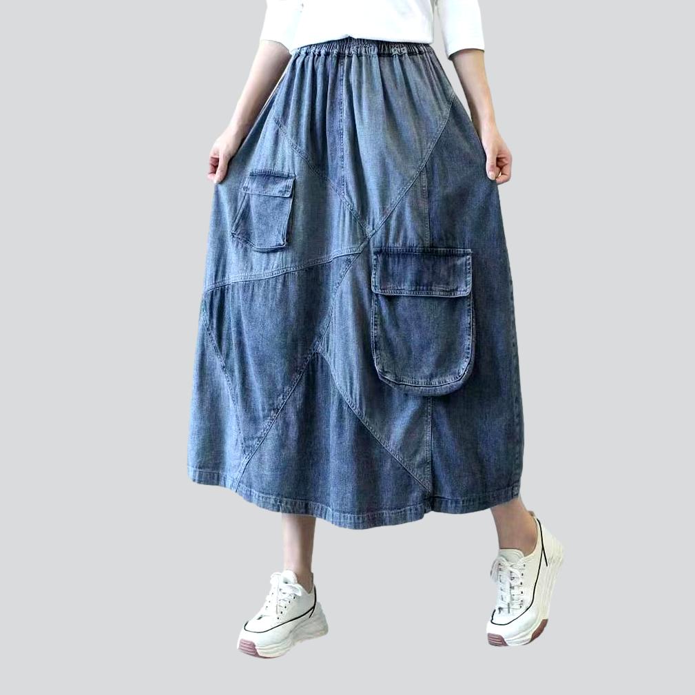 Verbinde zeitlose Couture mit modernem Trend – mit diesem verlängerten Jeansrock im Patchwork-Cargo-Stil. Perfekt für Tag- und Abendlooks. Dieser Rock ist ein Must-have für alle Modebewussten. Setze ein Statement und verleihe deiner Garderobe das gewisse Etwas!