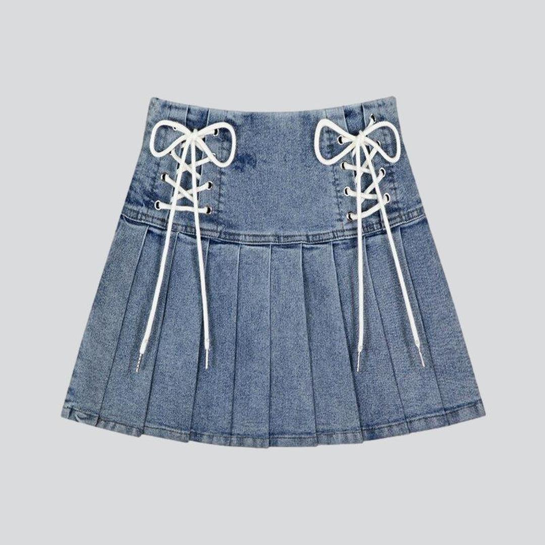 Hol dir diesen Sommer die 90er zurück mit unserem plissierten Jeansrock aus der Sommerkollektion 2023! Er vereint das Beste aus zeitgenössischer Mode und nostalgischem Grunge. Dieser Rock ist die perfekte Mischung aus kantigem und raffiniertem Stil.