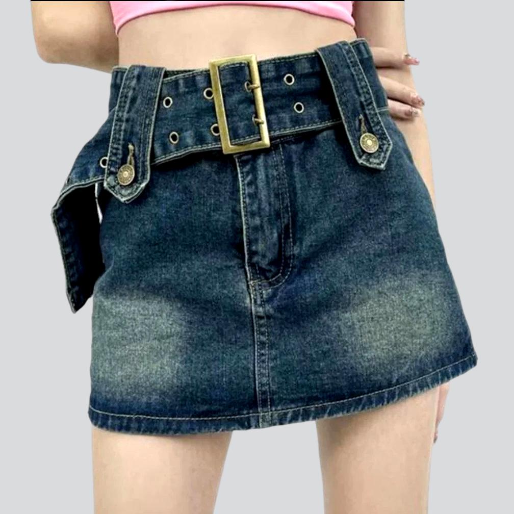 Bringen Sie Ihren inneren Streetstyle zum Ausdruck mit unserem Skort mit Gürtel aus der Frühjahr-Sommer-Kollektion 2023! Dieser Skort mit mittlerer Taille, Reißverschluss und Knopfverschluss ist aus hochwertigem, geschliffenem Denim gefertigt und verleiht Ihnen einen einzigartigen Look, der zeitgenössische Mode mit nostalgischem Grunge verbindet.