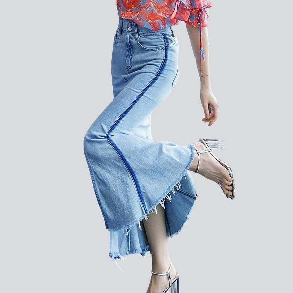 Dieser Rock verkörpert Streetstyle pur. Mit seinen stylischen Bändern, der hellen Waschung und der Trompeten-Silhouette sorgt er für einen Look, der mühelos für Aufsehen sorgt. Die hohe Taille und der Reißverschluss mit Knöpfen verleihen ihm einen Hauch von Eleganz. Der elastische Stoff verspricht ganztägigen Tragekomfort.
