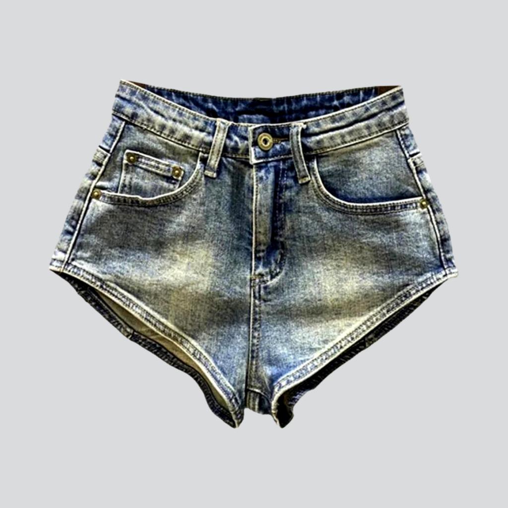 Erwecken Sie den Inbegriff des Sommertrends mit unseren Vintage- Jeansshorts für Damen aus der Sommerkollektion 2023 zum Leben! Eine Mischung aus City-Mode und Vintage-Flair. Diese Shorts zeichnen sich durch eine gerade Passform mit mittlerer Taille und einen Reißverschluss mit Knopfverschluss für einen lässigen und dennoch eleganten Look aus.