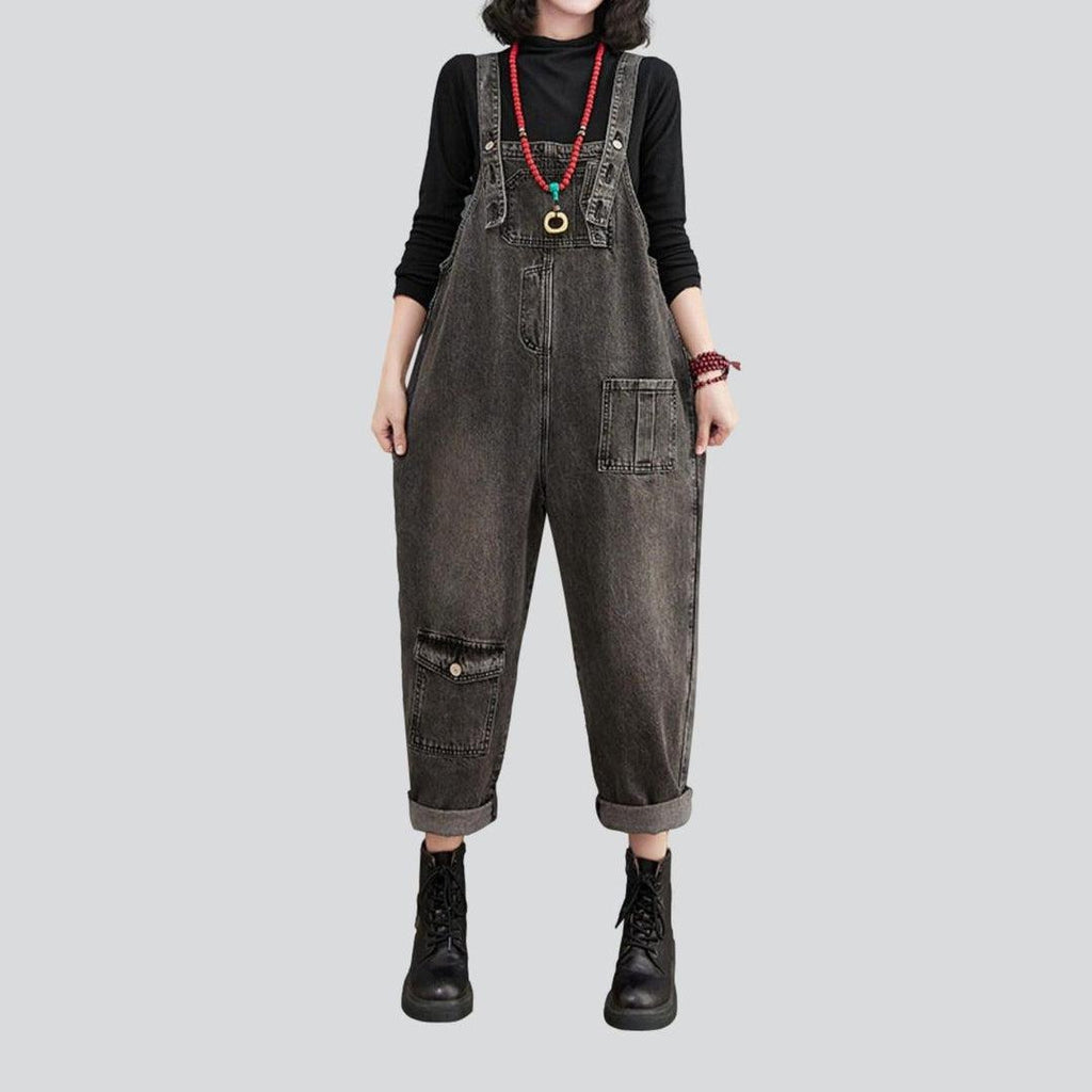 Setzen Sie ein Statement mit unserem grauen Jeans-Jumpsuit für Damen im Vintage-Stil aus der Herbstkollektion 2023 – eine perfekte Mischung aus Y2K-Trend und moderner Mode!