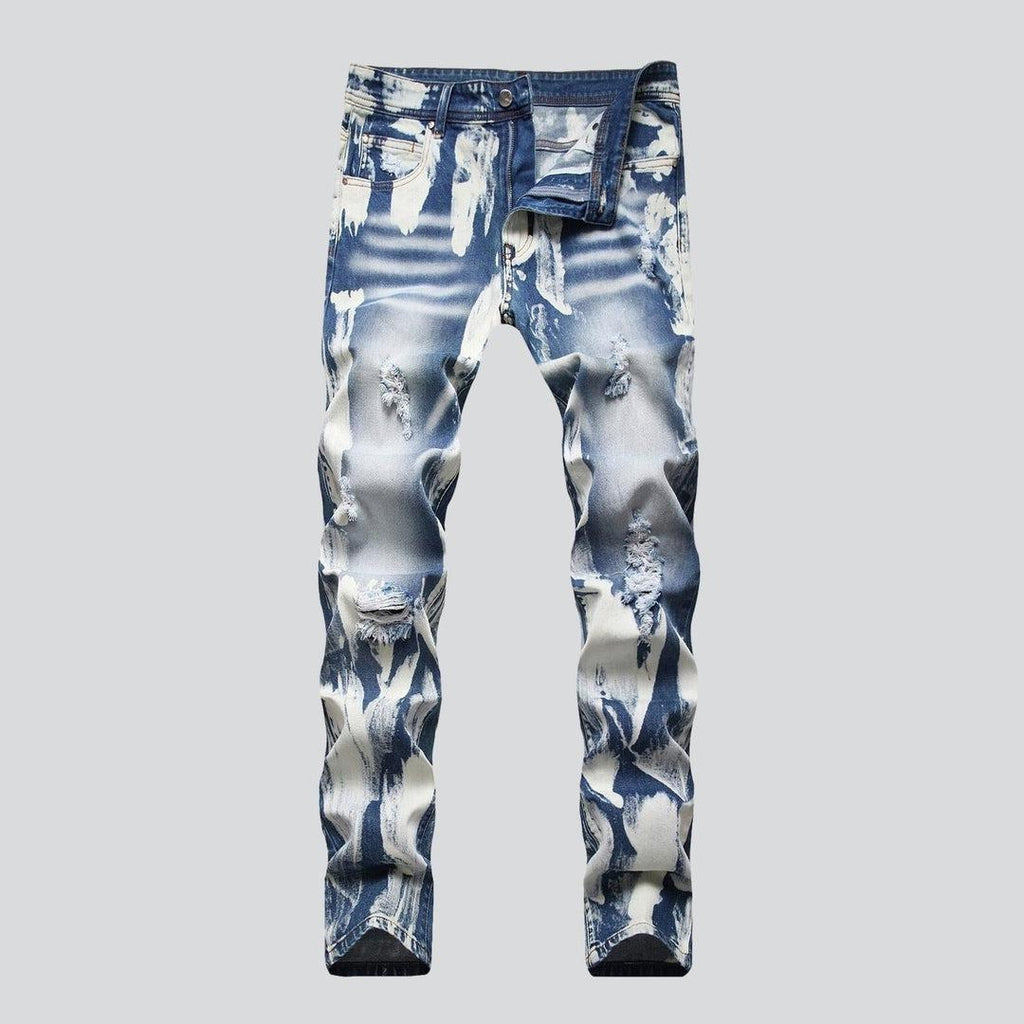 Erleben Sie die perfekte Kombination aus urbanem Stil und Komfort mit unserer Frühjahr-Sommer-Kollektion 2023 aus weiß lackierten Herrenjeans . Mit schmaler Passform, mittlerer Taille und dehnbarem Stoff verleihen diese Hosen jedem Look mühelose Eleganz. Der Reißverschluss und Knopfverschluss sorgen für einen sicheren und lässigen Sitz, während die zerfetzten Details ein Statement für starke Individualität setzen.