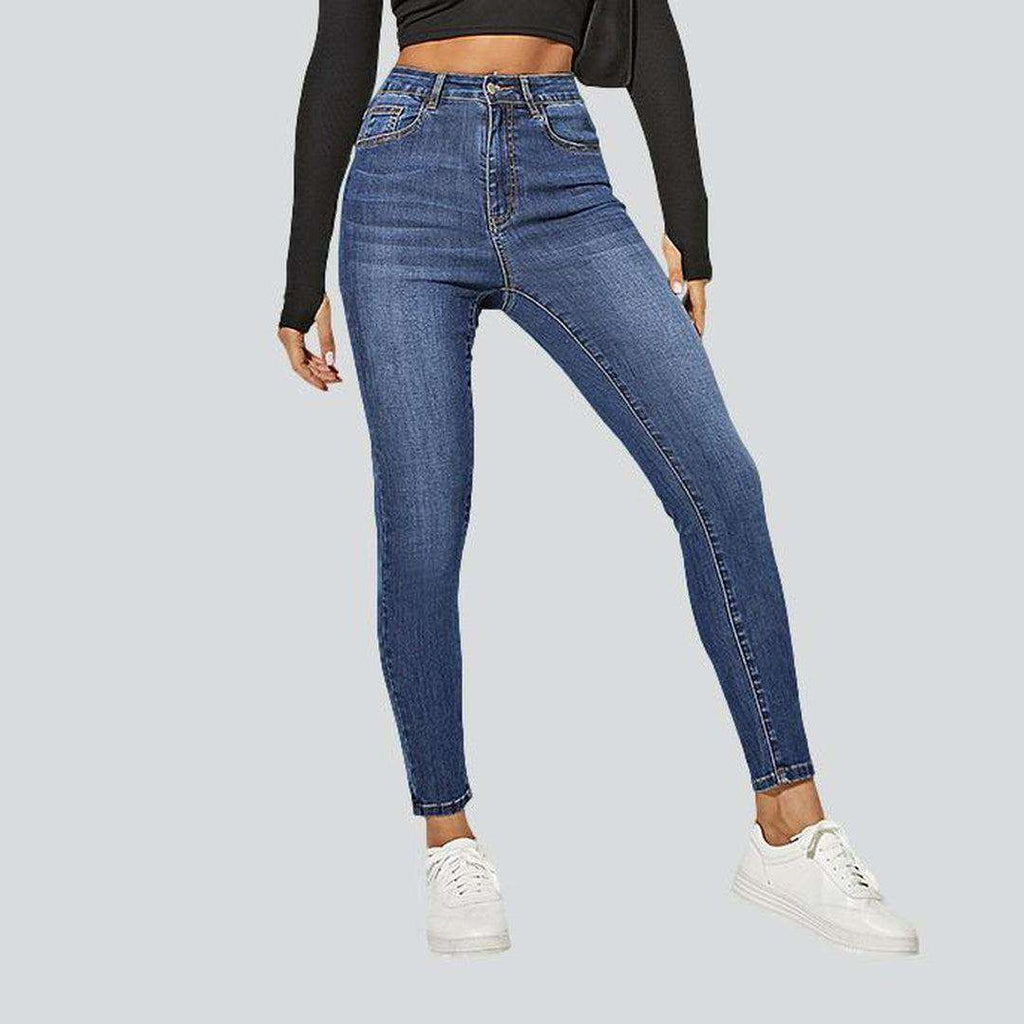 Presentamos la colección de otoño 2023 de jeans ajustados hasta los tobillos: ¡la combinación perfecta de estilo, comodidad y sofisticación! Estos jeans casuales, lavados a la piedra, presentan un diseño de tiro alto. Cierre de cremallera y botón, y tejido elástico para una silueta ceñida.