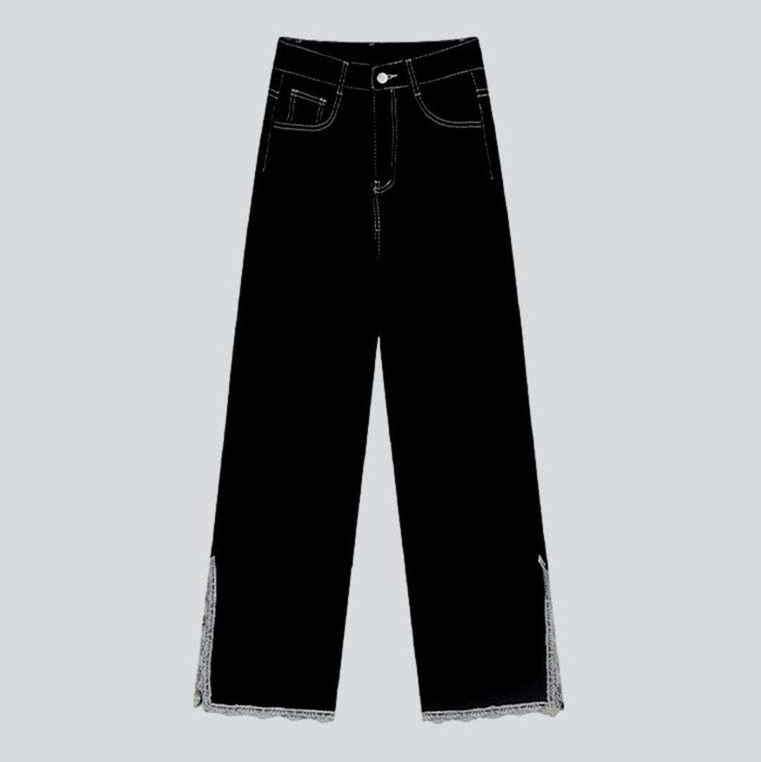 Estos jeans holgados están diseñados para ser favorecedores y cómodos. Su estilo urbano te hará destacar entre la multitud. Los detalles de encaje le dan un toque de elegancia, mientras que su cintura alta garantiza un ajuste ceñido. El cierre de cremallera y botón los hace fáciles de poner y quitar.