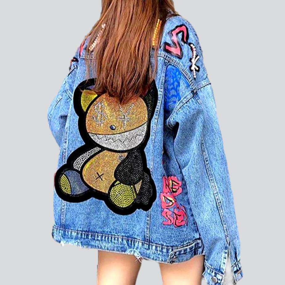 Chaqueta vaquera con estampado de oso e inscripciones online: excelentechaqueta vaquera para mujer de la colección Primavera-Verano 2023. El estilo urbano te permite centrarte en tu individualidad, en lugar de en las tendencias de moda actuales. Puedes destacar creando tu propio estilo con prendas de estilo urbano. La elegancia urbana te permitirá expresarte de forma auténtica, reflejando quién eres y lo que representas. Tus elecciones de ropa representan tu personalidad y valores. El estilo urbano moderno también puede ser útil para destacar y presumir de estilo. No tienes que seguir las tendencias de la temporada. Puedes crear un look totalmente personal.