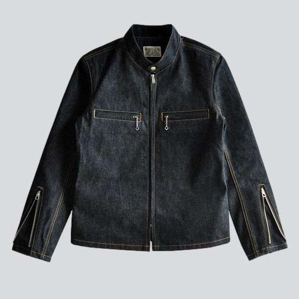 Sumérgete en un mundo de inspiración motera con nuestra chaqueta vaquera para hombre de la colección Primavera 2023. Confeccionada con denim de lujo, esta prenda sin duda causará sensación con su dobladillo sin rematar, corte entallado y cierre de cremallera. Perfecta para veladas de verano. ¡Causarás una gran impresión con su elegancia natural y sofisticación atemporal!