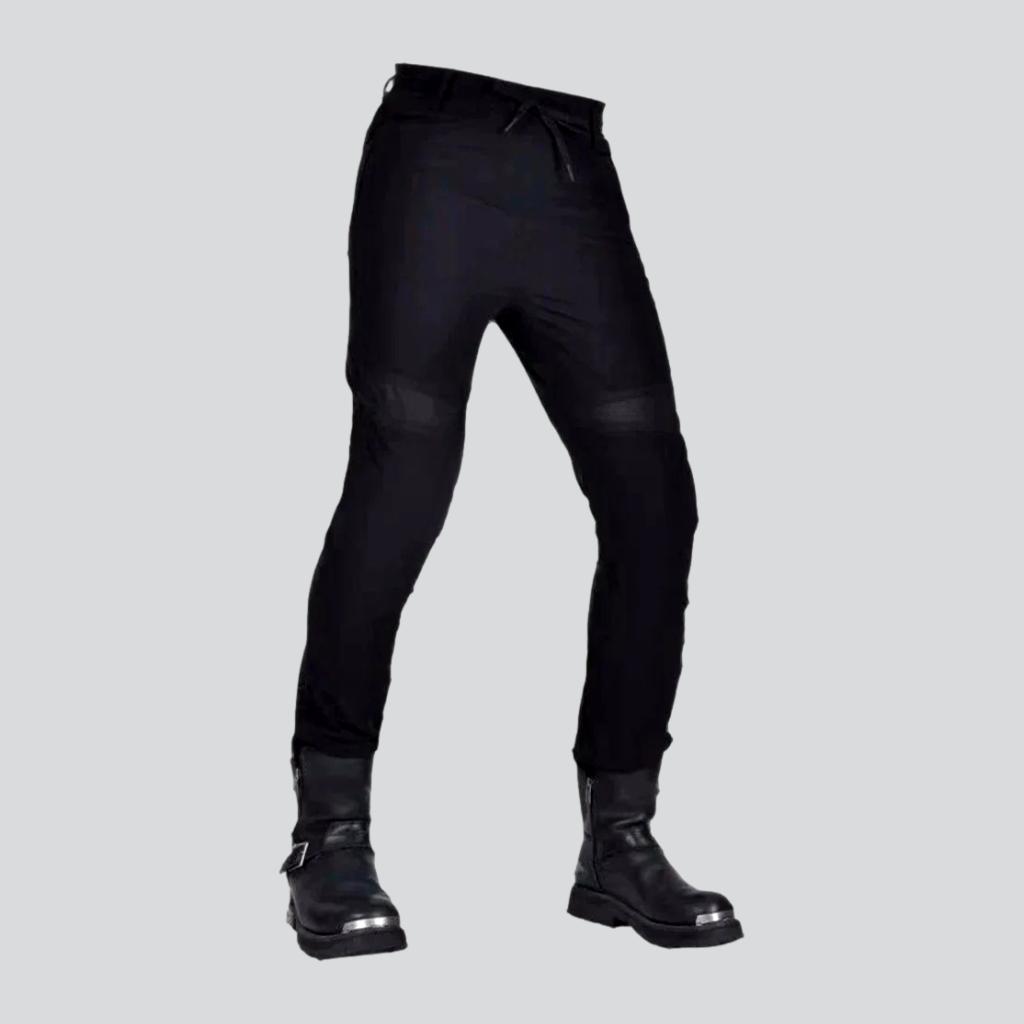 Luce un estilo elegante y natural para cualquier ocasión, ya sea al aire libre o informal, con estos pantalones vaqueros de tiro medio para motociclista. Con diseño monocromático, tejido negro transpirable, rodilleras, cierre de cordón y corte a media cintura, estos pantalones están diseñados para máxima protección y comodidad. ¡Prepárate para cualquier ocasión! ¡Añádelos a tu armario hoy mismo!