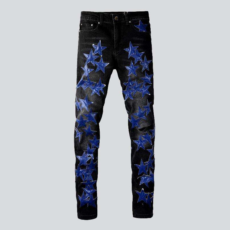 Presentamos nuestros impresionantes jeans negros con bordado de estrellas azules. Estilo Y2K de la colección de otoño de 2023: ¡la combinación perfecta de estilo relajado y elegancia de alta costura!