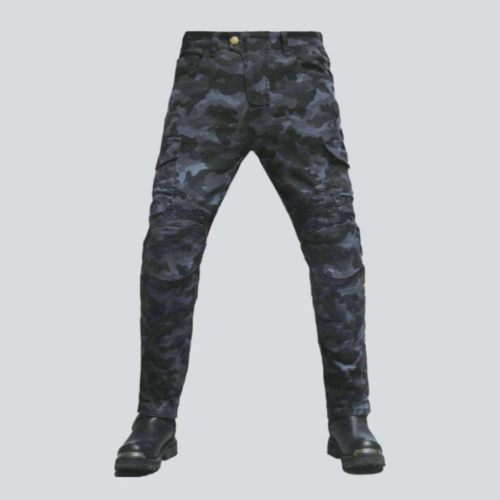 Adelántate a la moda con nuestros vaqueros biker con estampado de camuflaje para hombre. Estilo biker de la colección de otoño 2023. Estos vaqueros combinan a la perfección la alta costura contemporánea con un toque nostálgico y rebelde. Disfruta de su corte ajustado, tiro medio y cierre de cremallera y botón para una combinación perfecta de comodidad y estilo.