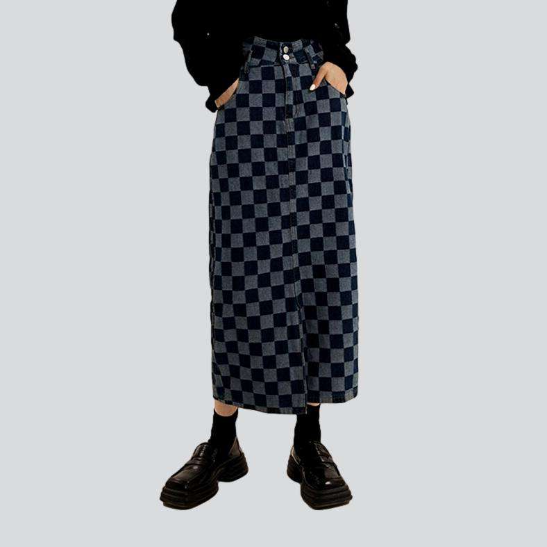Canaliza a tu fashionista interior con nuestra falda vaquera larga a cuadros de la colección Otoño 2023, un tributo atemporal al estilo Y2K, ¡perfectamente adaptada a la mujer moderna!