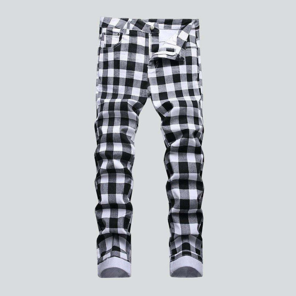 Añade una combinación perfecta de estilo urbano y alta costura a tu armario con nuestros vaqueros blancos a cuadros para hombre de la colección Primavera-Verano 2023. Con un corte ajustado y un diseño de cintura media con cierre de cremallera y botón, estos vaqueros elásticos son perfectos para cualquier ocasión. ¡Luce elegante y luce informal todo el día!
