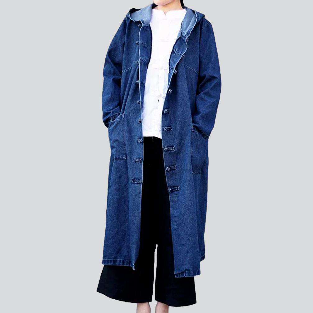 Marque la diferencia con la moda con el exclusivo abrigo de mezclilla con capucha de estilo chino de la colección Primavera-Verano 2023, ¡inspirado en los años 90!