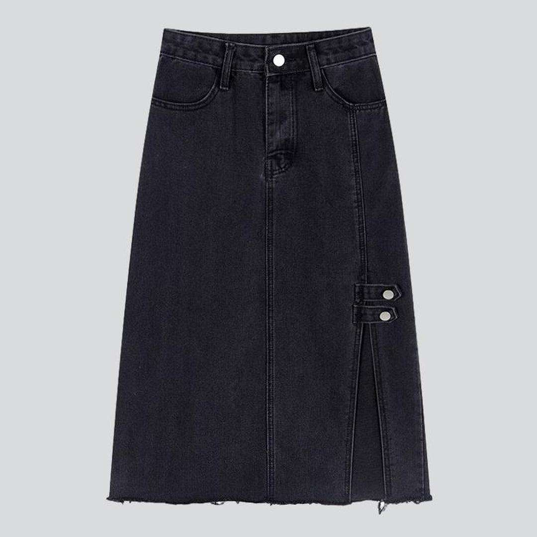 Presentamos la falda larga de mezclilla con abertura y clip de la colección de otoño de 2023: ¡una verdadera máquina del tiempo de la moda que te transporta al siglo XX con su look monocromático de cintura elevada!