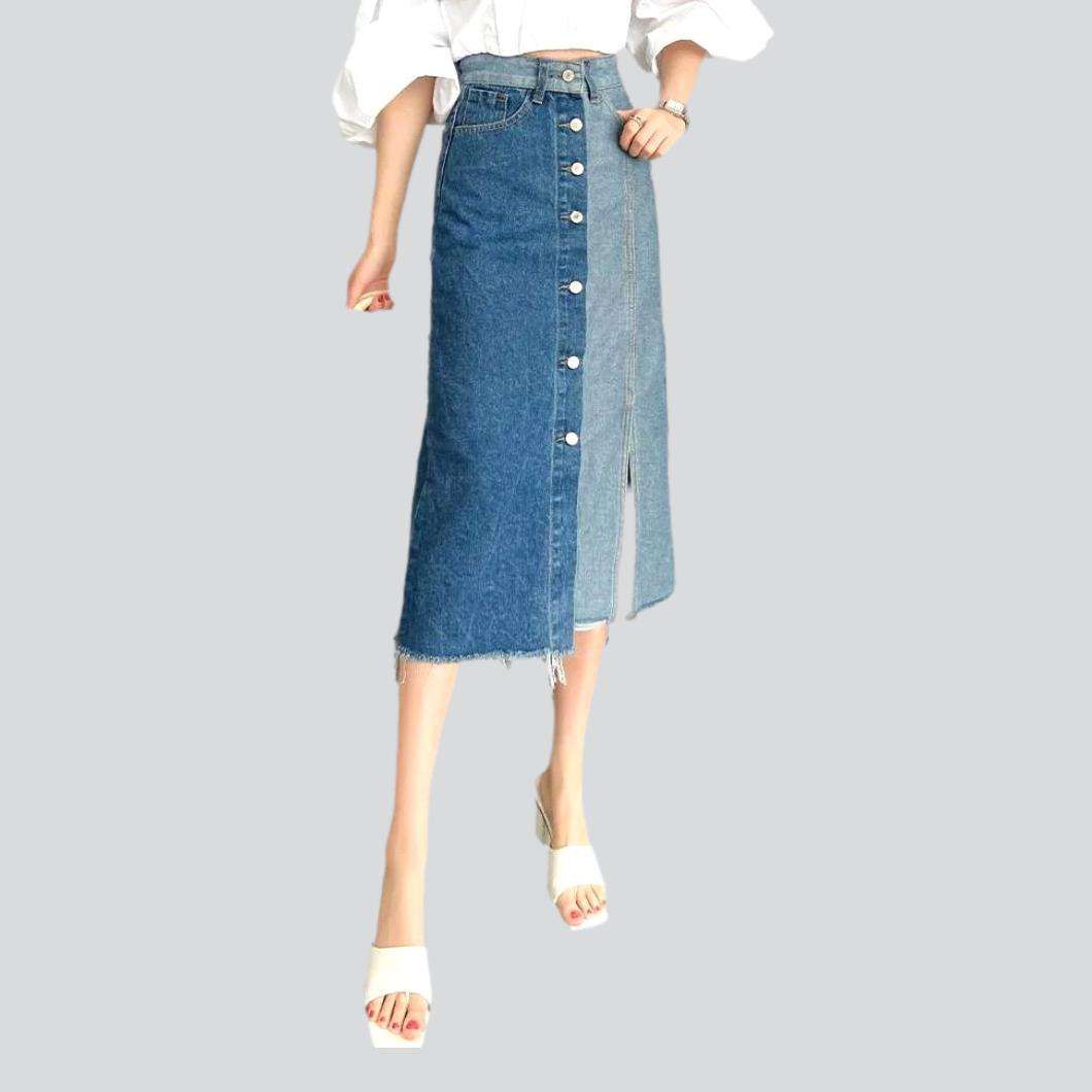 Experimenta una ola de nostalgia con la falda vaquera con abertura y bloques de color de nuestra colección Primavera-Verano 2023. La fusión perfecta entre la moda moderna y el look icónico del milenio. Esta falda de cintura media está diseñada para añadir un toque atemporal a tu armario.