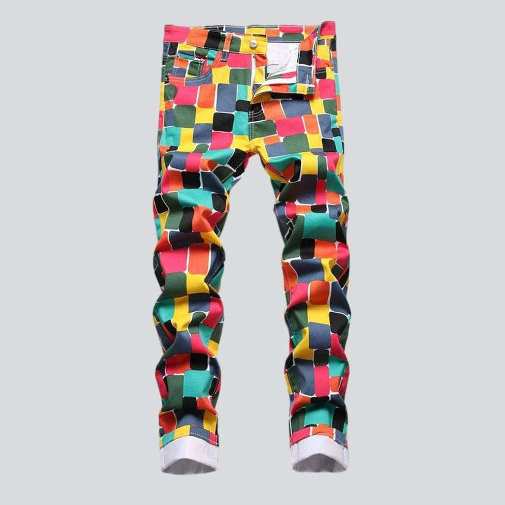 ¡Ya están aquí! Nuestros jeans de tiro medio a cuadros rojos para hombre de la colección Primavera-Verano 2023 combinan el legendario estilo de la era Y2K con las tendencias actuales. Este denim ajustado y elástico está confeccionado a la perfección. Cuenta con cierre de cremallera y botón para un ajuste cómodo y estampados que te harán destacar.