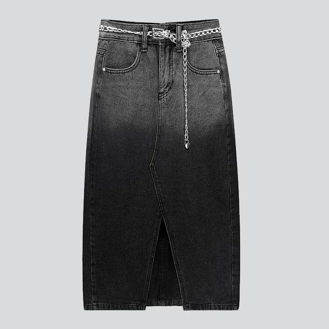 Presentamos la falda vaquera larga de cintura alta de la Colección Otoño 2023 con estampados pintados y un toque urbano. Con su acabado lijado y cierre de cremallera y botón, ¡esta falda sin duda causará sensación!