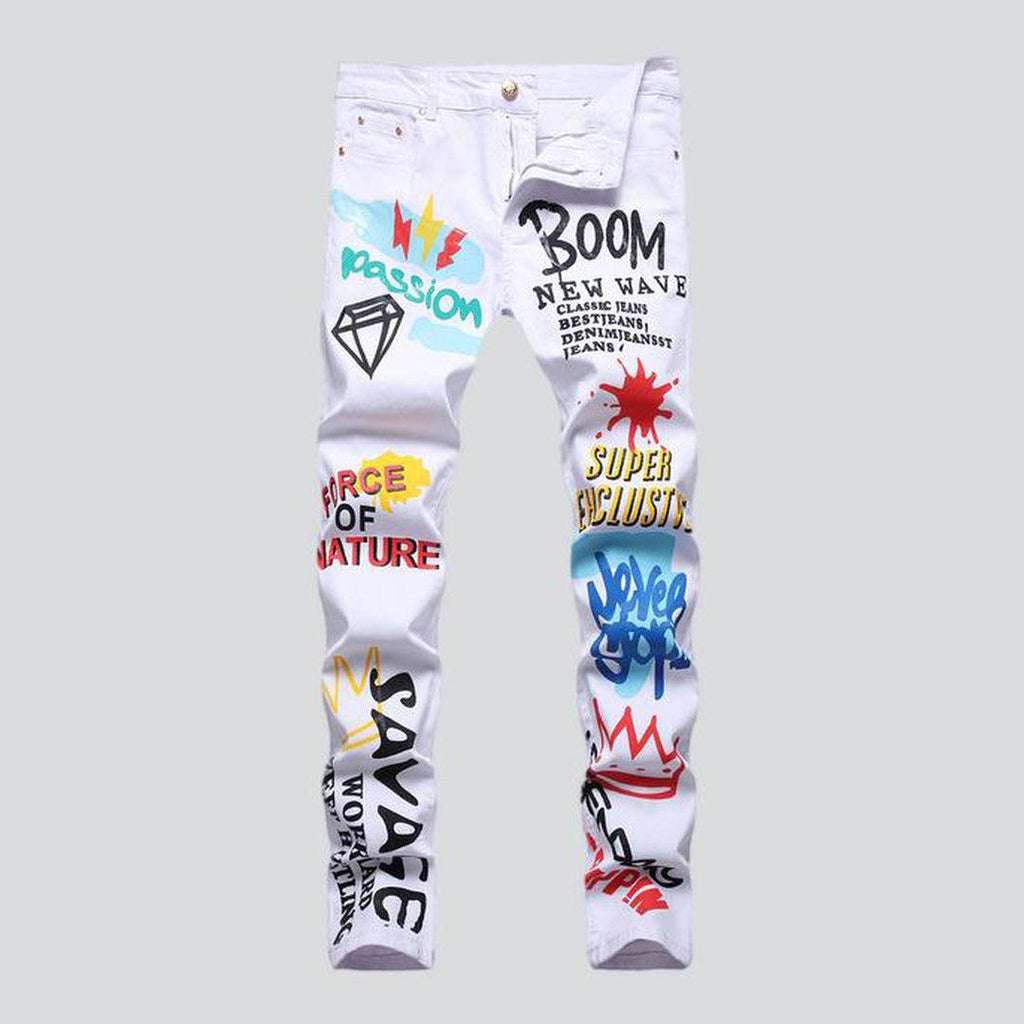 Marca tendencia conlos jeans blancos de estilo relajado de la colección Primavera-Verano 2023 para hombre. Con corte ajustado, tiro medio y tejido elástico, estos jeans están diseñados para máxima comodidad y estilo. El cierre de cremallera y botón ofrece estilo y practicidad, mientras que el vibrante diseño realza tu look. Deja que tu individualidad brille y descubre por qué estos jeans son la adición perfecta a tu armario.