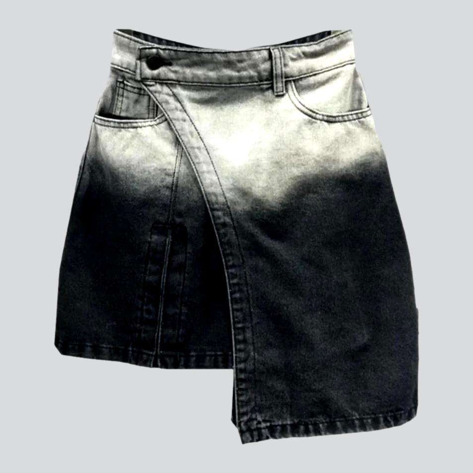 Presentamos la falda vaquera negra de estilo urbano de la Colección de Verano 2023, ¡imprescindible para las fashionistas! Con su diseño asimétrico de talle medio y teñido por inmersión, y cierre de cremallera y botón, esta falda es un clásico atemporal que te hará destacar entre la multitud.