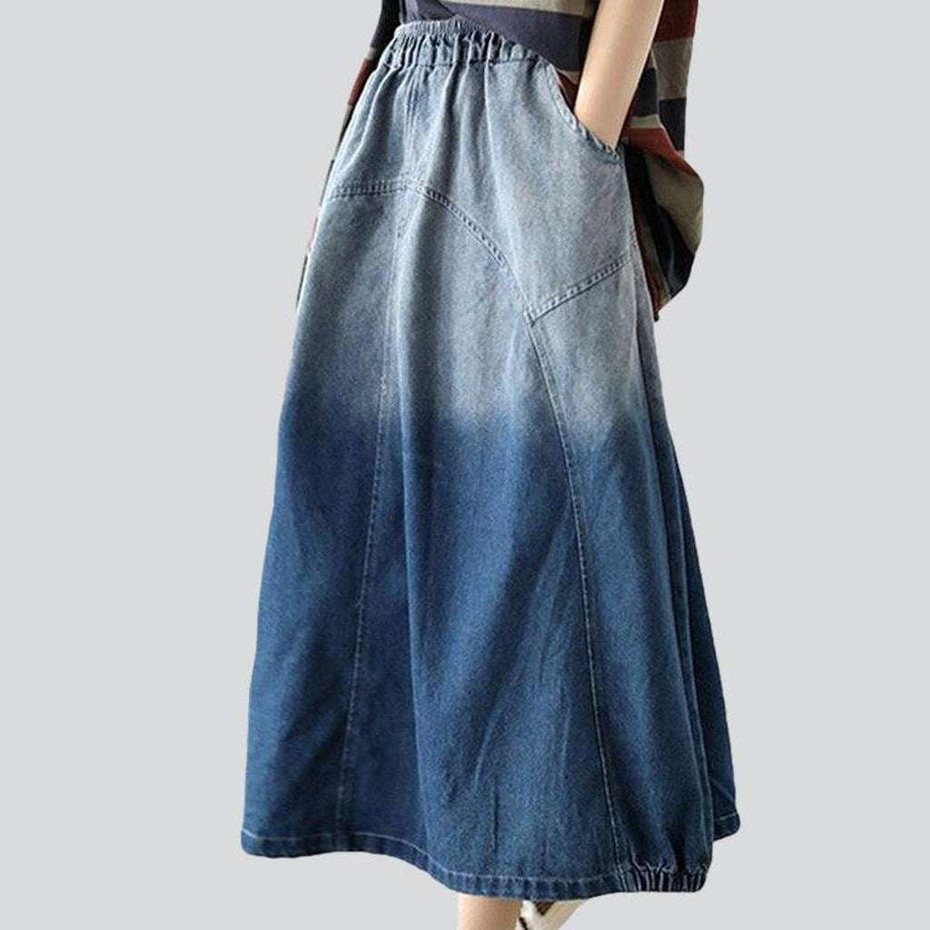 Presentamos la prenda urbana imprescindible de la colección Otoño 2023: ¡la falda vaquera larga con contrastes de colores! Esta falda de cintura alta está diseñada para realzar tu armario con un toque de elegancia grunge.