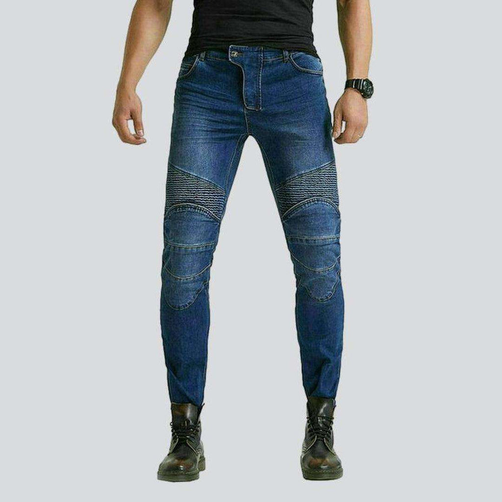 Lleva tu estilo a otro nivel con nuestros jeans biker para hombre de la Colección Otoño 2023. Confeccionados por expertos con características distintivas que te harán la envidia de tus amigos, estos jeans ajustados de cintura media con lavado efecto piedra te harán lucir espectacular. Con costuras en contraste, cierre de cremallera y botón, y un lujoso tejido denim, seguro que llamarás la atención y te sentirás relajado.