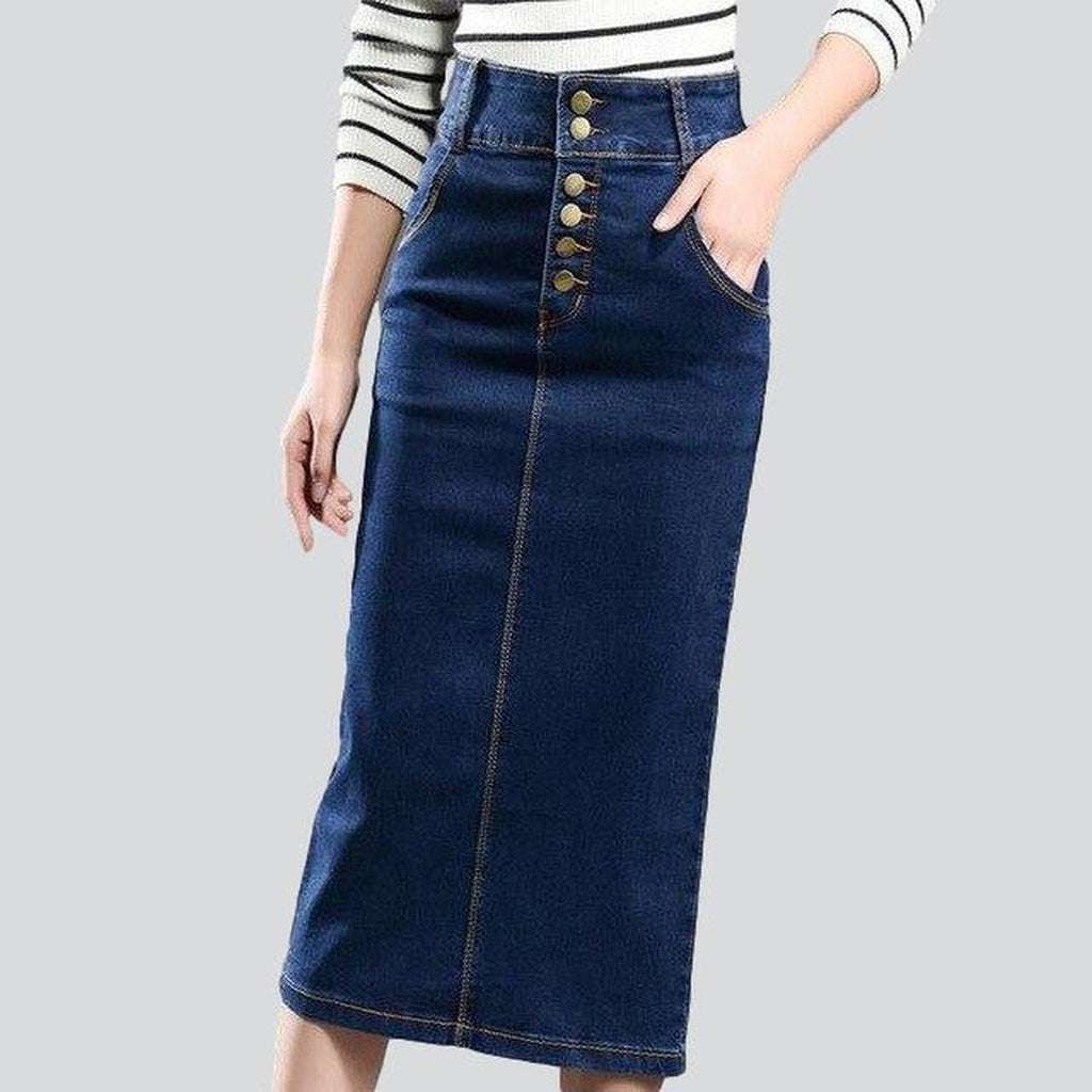Experimenta la combinación perfecta de nostalgia del Y2K y la moda actual con nuestra falda vaquera larga azul oscuro de la colección de otoño 2023. Con un corte entallado y cintura alta, esta elegante prenda llamará la atención allá donde vayas.