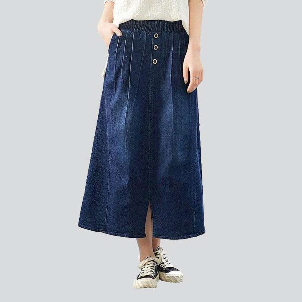 Presentamos nuestra falda larga de mezclilla con lavado oscuro inspirada en el Y2K de la colección de otoño de 2023: ¡la combinación perfecta de tendencia envejecida y moda de moda!