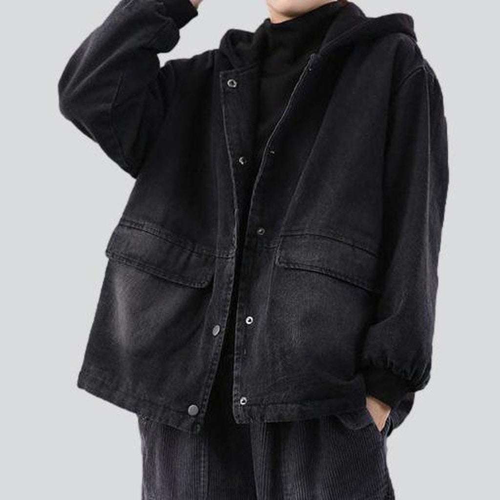 La combinación perfecta de estilo bomber urbano y atemporal. Estachaqueta vaquera es la manera perfecta de destacar. Diseñada para destacar, presenta un lavado oscuro y capucha para un look urbano y vanguardista. El cierre abotonado te garantiza una silueta segura y un estilo informal.