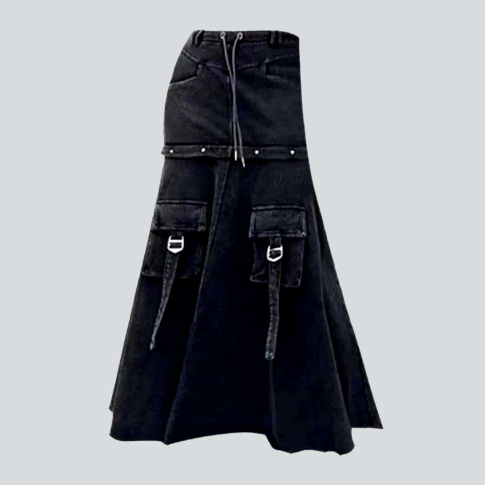 ¡Marca tendencia este verano con nuestra falda vaquera larga cargo desmontable de la colección Primavera-Verano 2023! Esta falda única está confeccionada con detalles de inspiración retro, como una silueta de cintura alta con cierre de cordón. ¡También presenta un estampado desgastado que sin duda despertará tu lado fashionista!